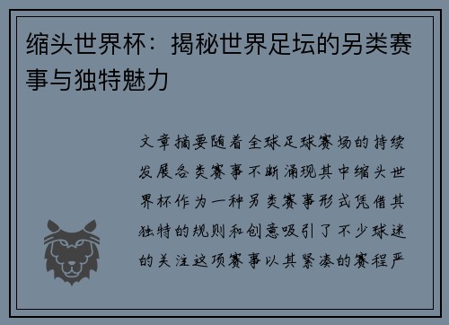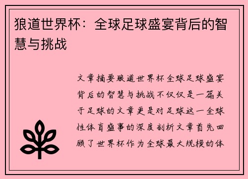 挎包世界杯:探寻全球时尚与运动的完美结合与独特魅力
